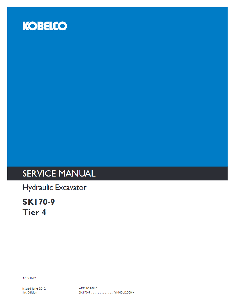 Kobelco SK170-9 Tier 4 Excavator Shop Service Repair Manual - PDF File Download