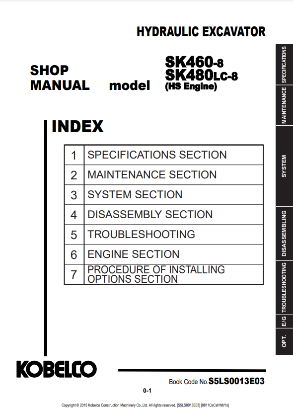 Download Complete Shop Service Repair Manual For Kobelco SK460-8, SK480-6 Excavator | Book Code - S5LS0013E03