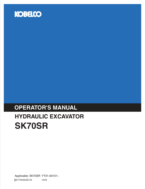 1. Discover the essential KOBELCO SK70SR Hydraulic Excavator Operator Manual (S2YT00002ZE-03) in a convenient PDF format. This comprehensive guide is designed to enhance your operational efficiency and ensure you get the most out of your excavator. With detailed instructions and illustrations, you’ll have all the information you need at your fingertips.
