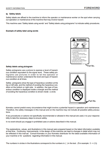 Complete operation and maintenance manual for the Komatsu PC130-7K Hydraulic Excavator (Serial Number 70001 and up). This comprehensive PDF document (UEAM003601) provides essential technical specifications, operating procedures, maintenance schedules, and troubleshooting guides. Indispensable resource for operators and maintenance personnel to ensure optimal performance, extend equipment lifespan, and maintain safety compliance during excavation operations.
