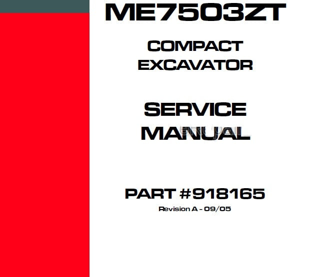 Download Service Repair Manual For Mustang ME7503ZT Compact Excavator. PART #918165 Revision A – 09/05