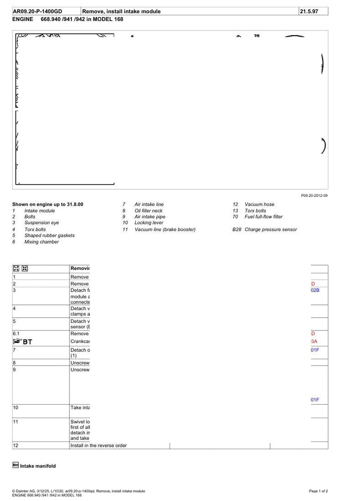 Remove install intake module ENGINE 668.940 /941 /942 in MODEL 168