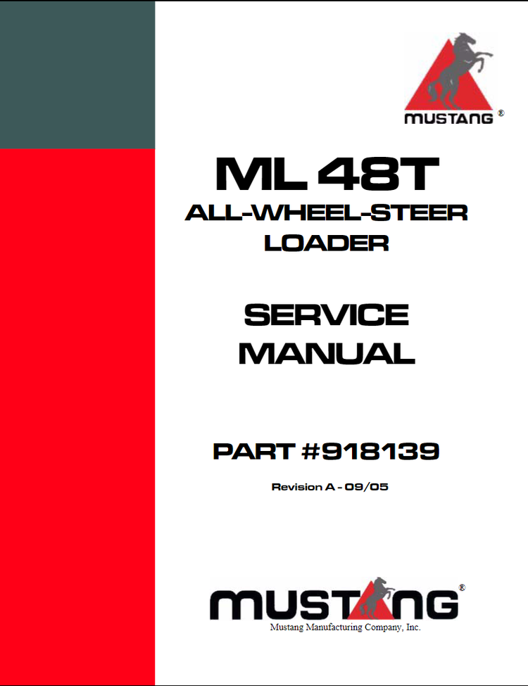 The ML48T Mustang All Wheel Steer Loader Service Repair Manual is a comprehensive PDF file with detailed instructions on servicing and troubleshooting your Mustang wheel loader. This technical document provides thorough insights into each component and the necessary repairs and maintenance. Get the data you need with a fast and easy download.