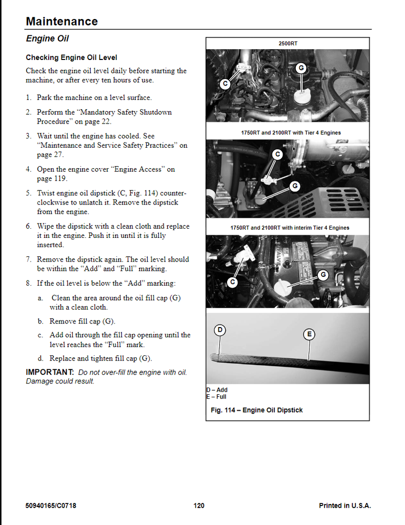 Models 1750RT/2100RT Tier 4 Engine Removal/Installation