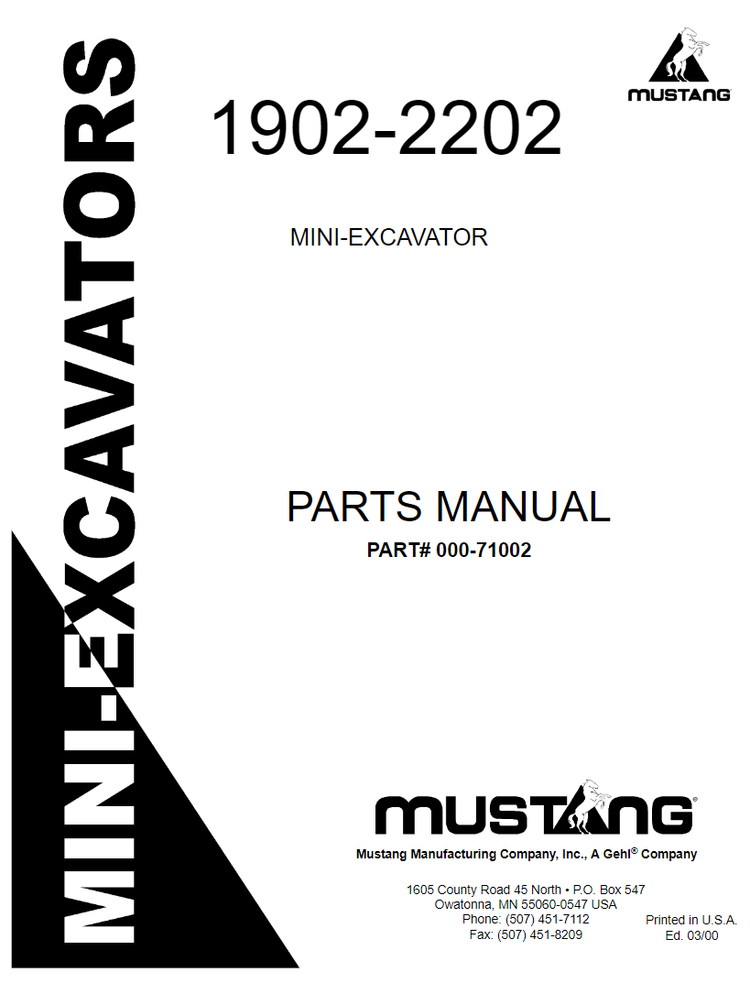 Mustang 1902-2202 Mini Excavator Parts Catalog Manual 000-71002 - PDF Download