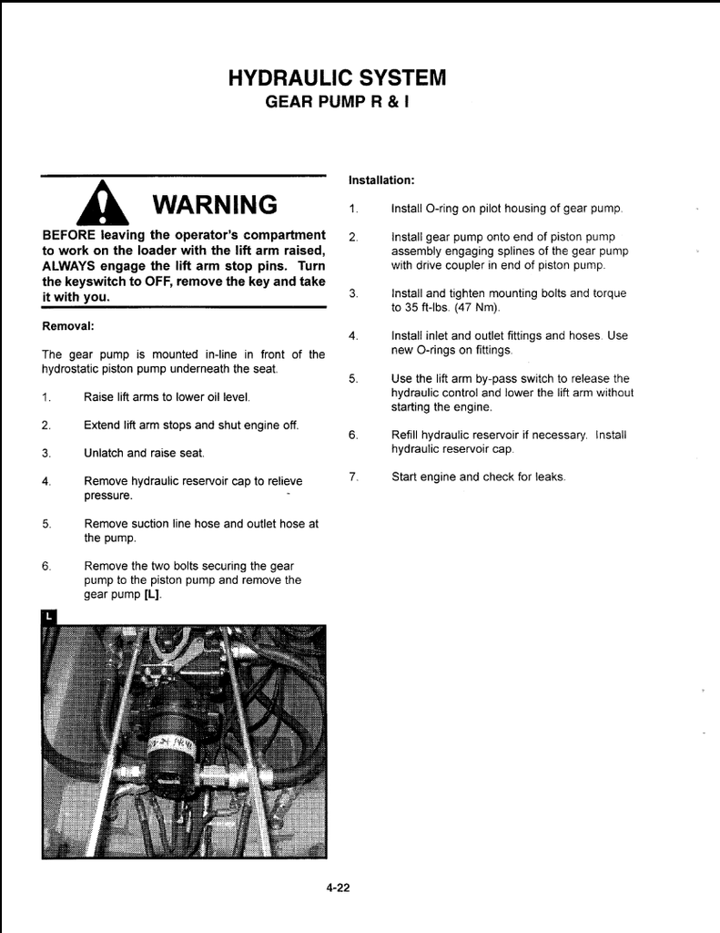 Hydrostatic Pump, Removal and Installa