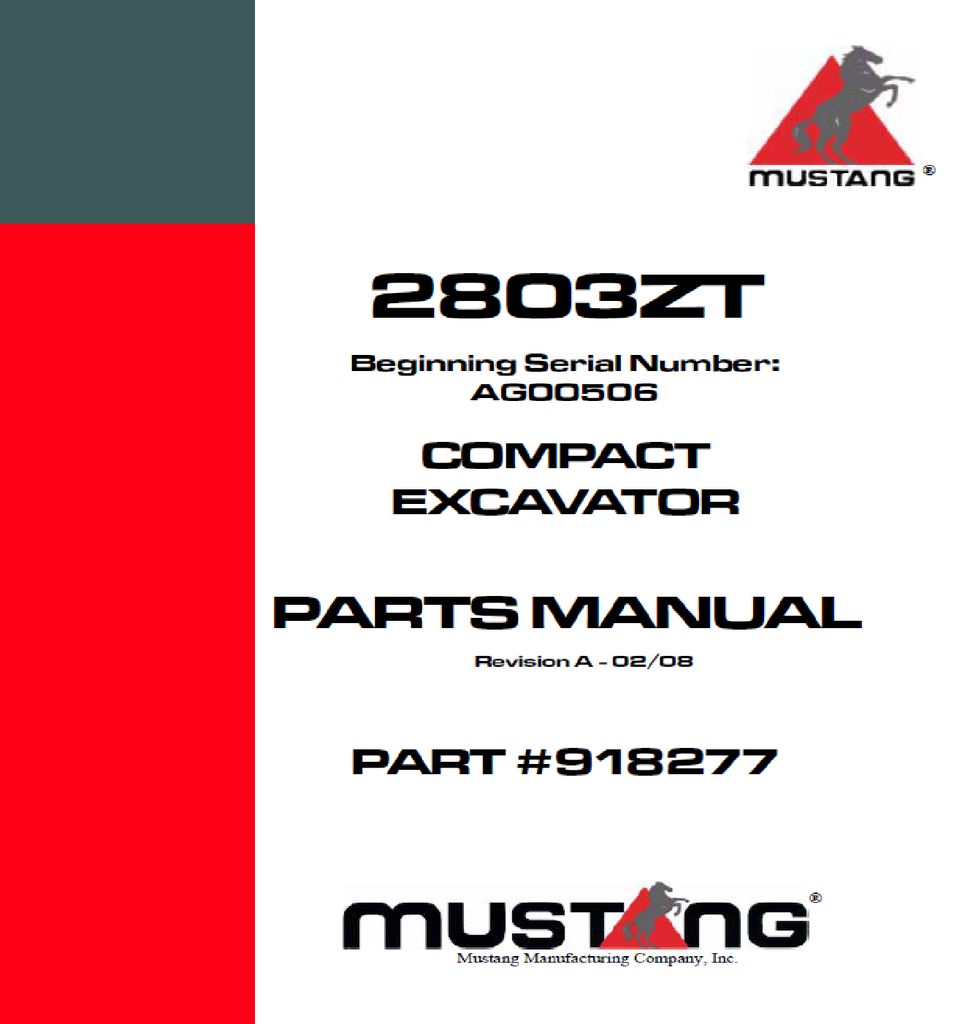 Mustang 2803ZT COMPACT EXCAVATOR Parts Catalog Manual 918277 PDF Download