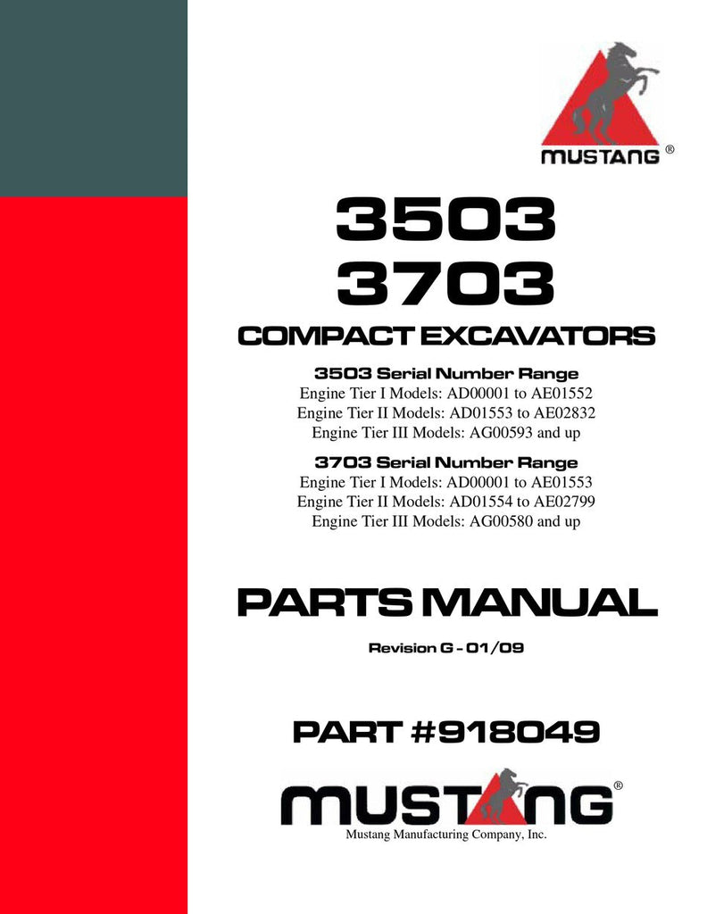 Mustang 3503 3703 COMPACT EXCAVATORS Parts Catalog Manual (SN AD00001 and Up), ME3703 (SN AD00001 and Up) 918049 PDF Download