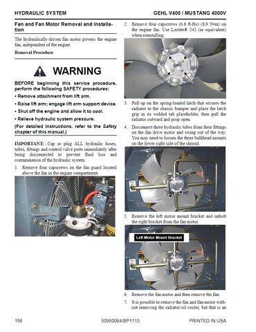Mustang 4000V, V400 Skid Steer Loader Repair Manual