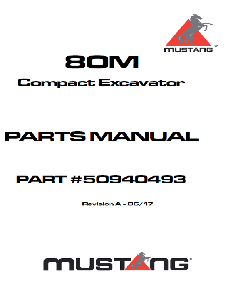 Mustang 80M Compact Excavator Parts Catalog Manual 50940493 PDF Download