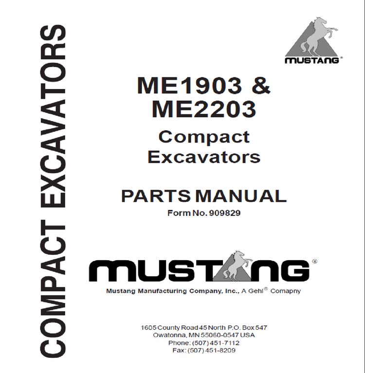 Mustang ME1903 & ME2203 Compact Excavators Parts Catalog Manual (SN AB00453 and Before) 909829 PDF Download