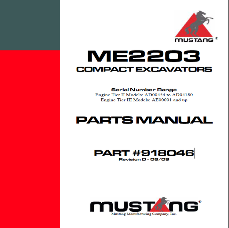 Mustang ME2203 COMPACT EXCAVATORS Parts Catalog Manual (SN AD00454 and Up) 918046 PDF Download
