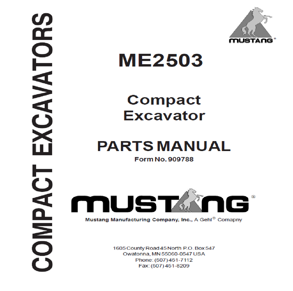 Mustang ME2503 Compact Excavator Parts Catalog Manual 909788 PDF Download