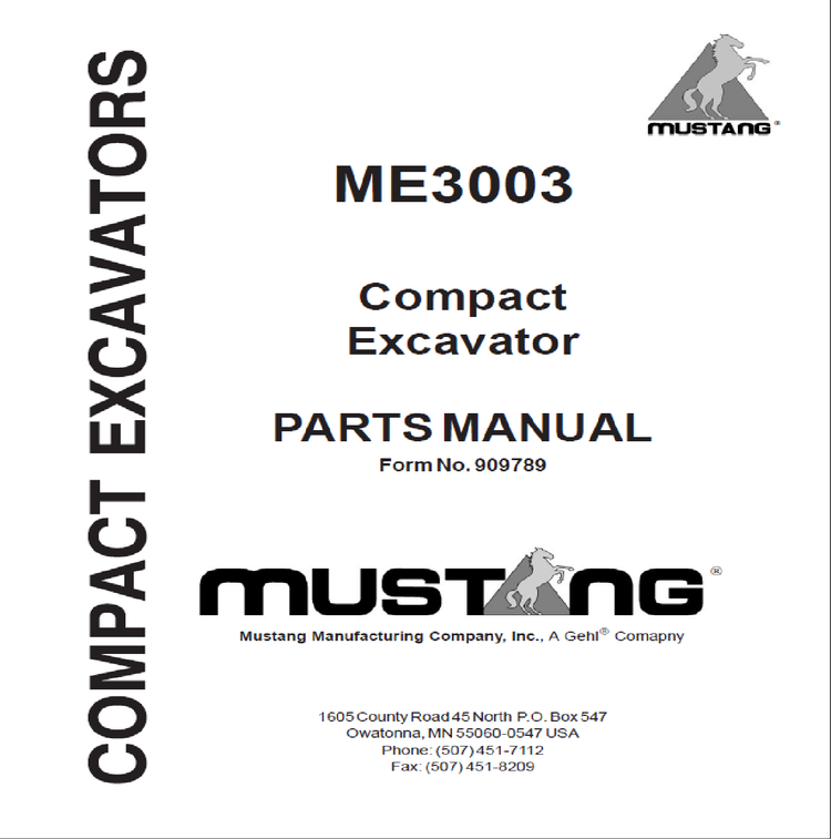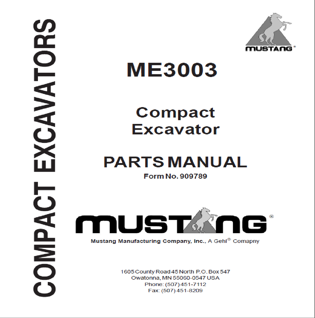 Mustang ME3003 Compact Excavator Parts Catalog Manual 909789 PDF Download
