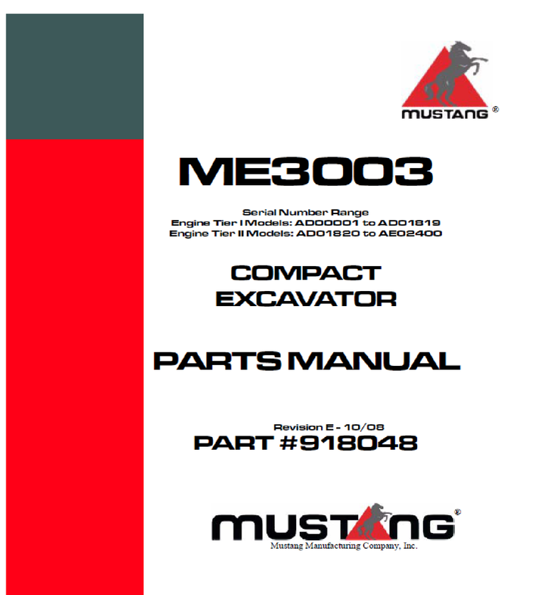 Mustang ME3003 COMPACT EXCAVATOR Parts Catalog Manual (SN AD00001 and Up) 918048 PDF Download