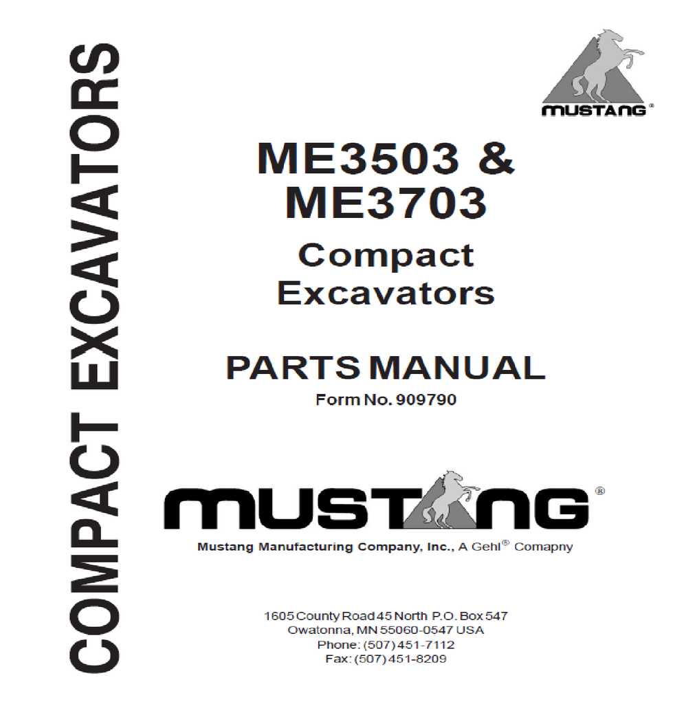 Mustang ME3503 & ME3703 Compact Excavators Parts Catalog Manual 909790 PDF Download
