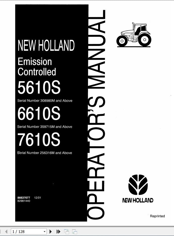 Operation & Maintenance, Operator's Models Covered - New Holand Tractor Emission Controlled 5610S, 6610S, 7610S
