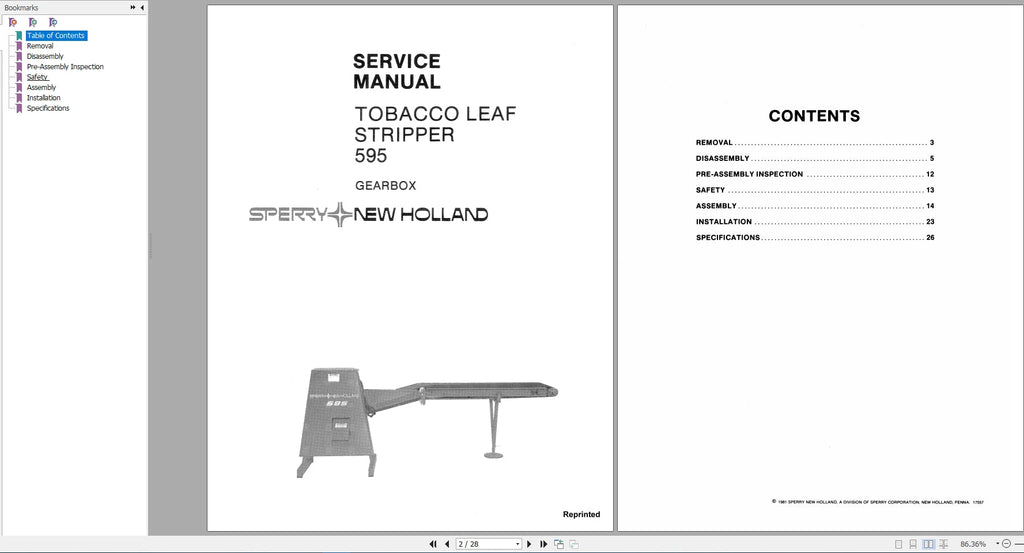 New Holland 595 Tobacco Leaf Stripper Service Repair Manual 40059510