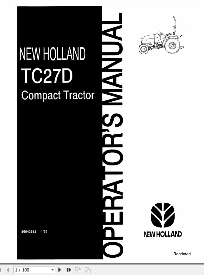 Download PDF For New Holland Compact Tractor TC27D Compact Operator’s Manual 86543863