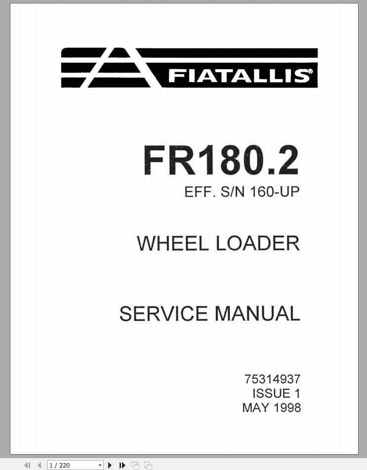New Holland Fiat Allis Wheel Loader FR180-2 Service Repair Manual 75314937
