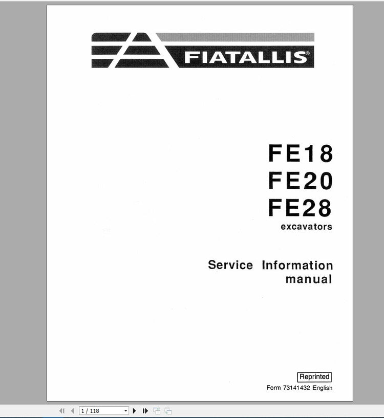 Model: Fiat FE18 20 28 Excavators Service Info. Man