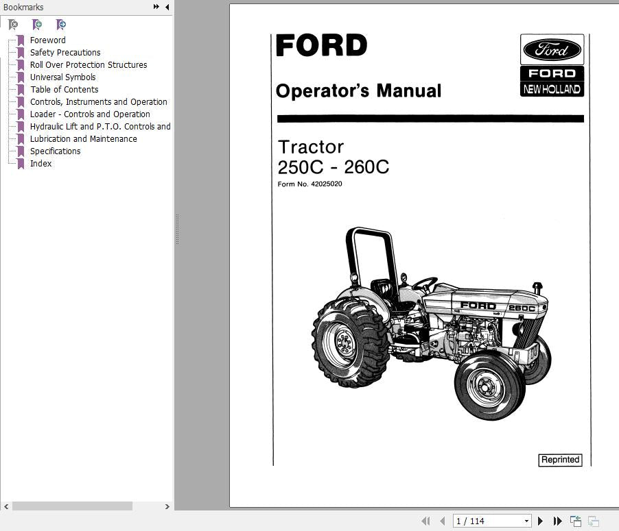 Download PDF For New Holland Ford 250C,260C Tractor Operator’s Manual 42025020