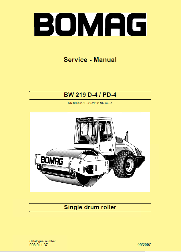 This Factory Service Repair Manual offers all the service and repair information about Bomag BW 219 D-4 / PD-4 Single Drum Roller. The information on this manual covered everything you need to know when you want to repair or service Bomag BW 219 D-4 / PD-4 Single Drum Roller.