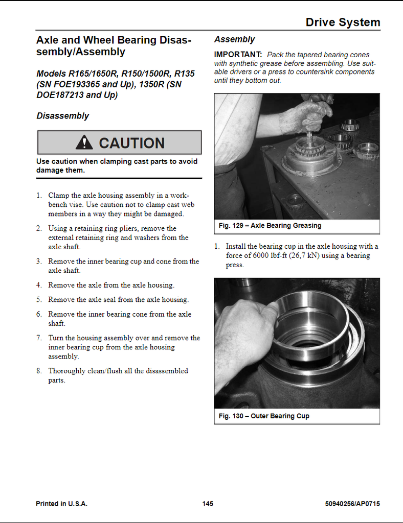 Engine Removal Models R135/1350R/R150/1500R Engine Installation.