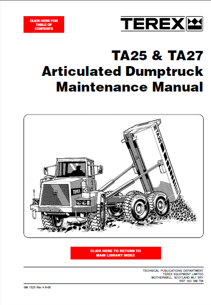 Terex TA25, TA27 Articulated Dump Truck Workshop Service Repair Manual Instant Download