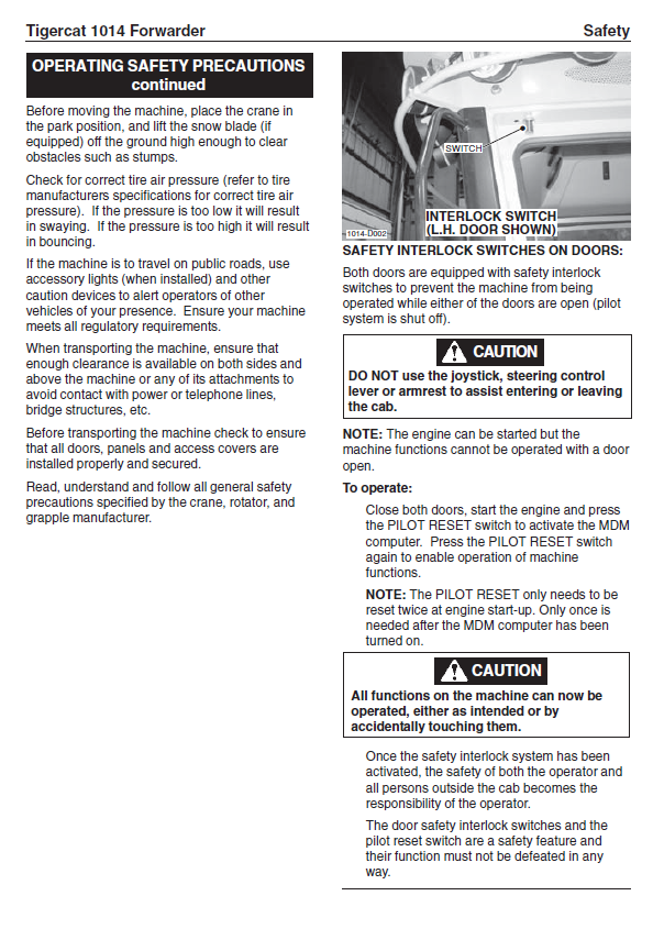 TIGERCAT 1014 FORWARDER OPERATOR/USER MANUAL (10140101-10140500) - PDF FILE DOWNLOAD
