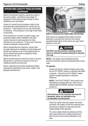 TIGERCAT 1014 FORWARDER USER MANUAL