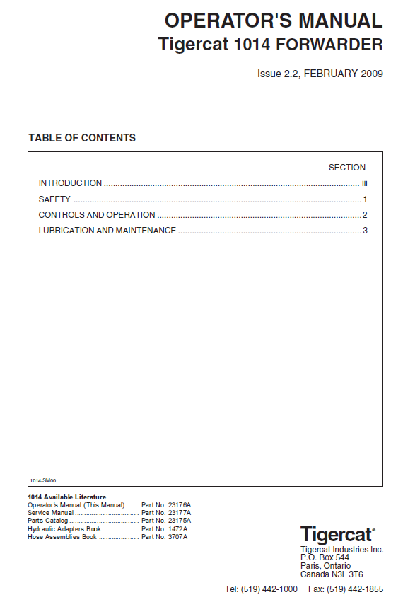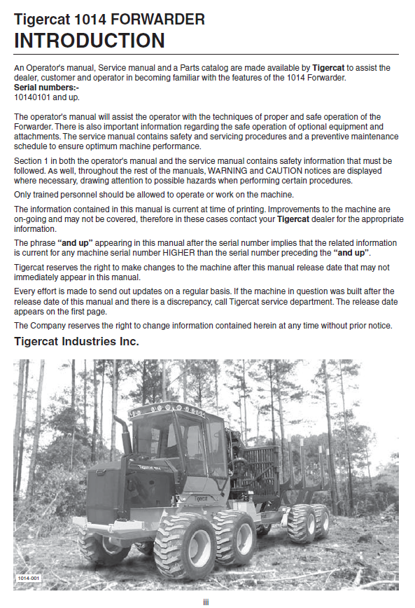 Download Complete Operator/User Manual For Tigercat 1014 Forwarder | Serial No. (10140101-10140500)