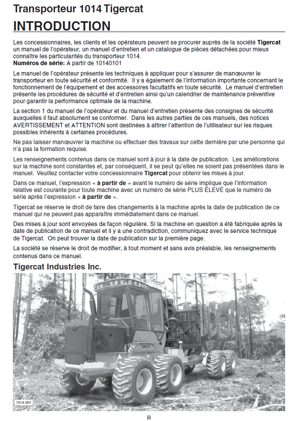 Download Complete Operator/User Manual For Tigercat 1014 Forwarder | Serial No. (10140101-10140500)