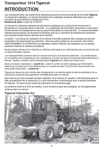 TIGERCAT 1014 FORWARDER OPERATOR/USER MANUAL (10140101-10140500) - PDF FILE DOWNLOAD