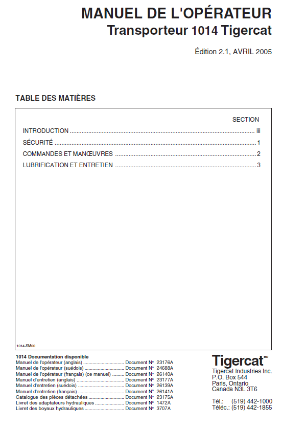 TIGERCAT 1014 OPERATOR/USER MANUAL