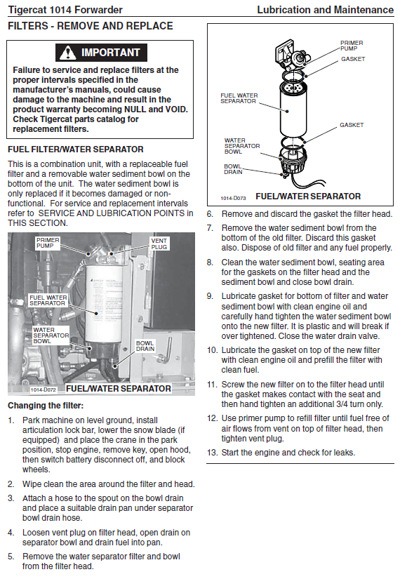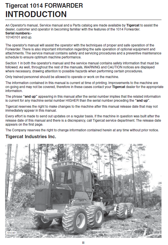 Download the Tigercat 1014 Forwarder Service Repair Manual to ensure your machine is running optimally. This comprehensive manual covers service repair procedures from 10140101 to 10140500. Everything you need to maintain, troubleshoot, diagnose, and repair your Tigercat 1014 Forwarder.