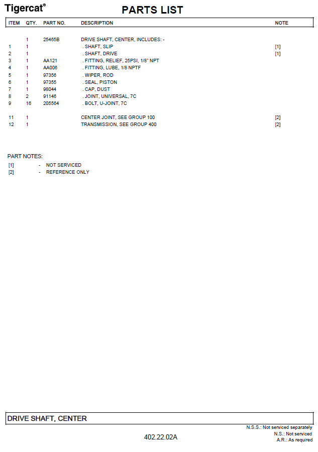 TIGERCAT 1045 PARTS CATALOGUE MANUAL