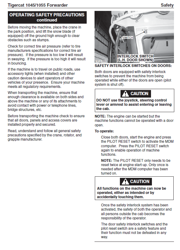 TIGERCAT 1055 FORWARDER USER MANUAL