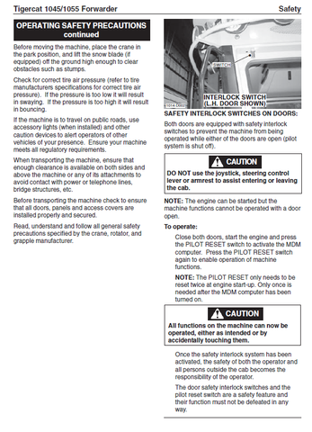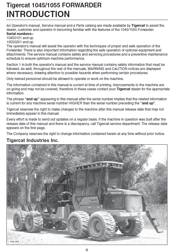 Download Complete Operator/User Manual For Tigercat 1055 Forwarder | Serial No. (10550101 10550300, 10550201-10550300)