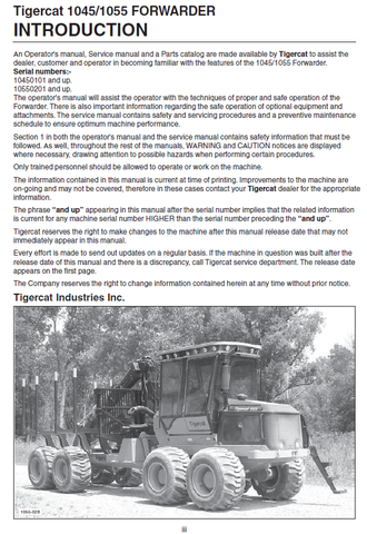TIGERCAT 1055 FORWARDER OPERATOR/USER MANUAL (10550101 10550300, 10550201-10550300) - PDF FILE DOWNLOAD