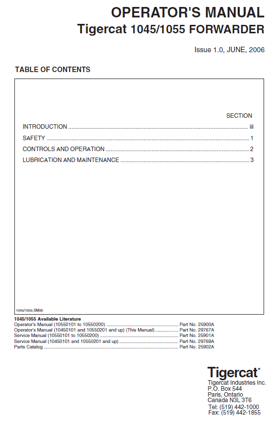 TIGERCAT 1055 FORWARDER OPERATOR MANUAL