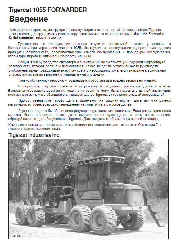 Download Complete Service Repair Manual For Tigercat 1055 Forwarder | Serial No. (10550101 10550300, 10550101-10550200) - Russian