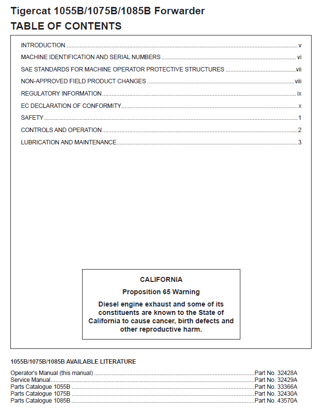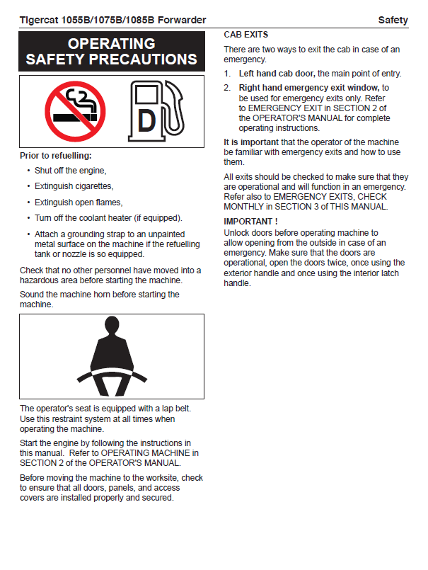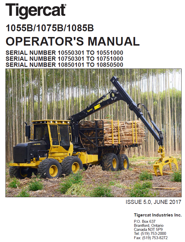 Download Complete Operator/User Manual For Tigercat 1055B Forwarder | Serial No. (10550301-10551000)