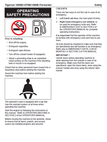 This PDF File Download provides Tigercat 1055B Forwarder Operator/User Manual content (10550301-10551000). It provides crucial operating and maintenance details required for efficient and safe operation of the machine. Expertly crafted, it offers clarity and accuracy to ensure reliable operation and maintenance.