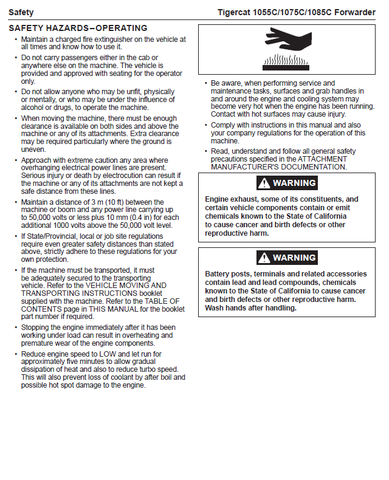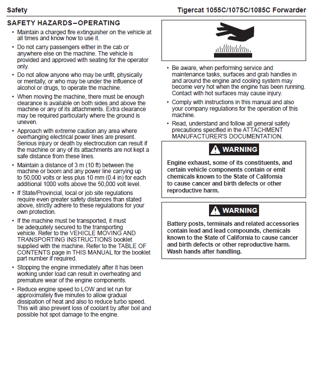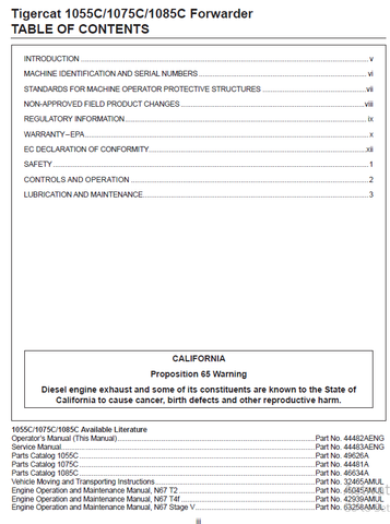 Download Complete Operator/User Manual For Tigercat 1055C Forwarder | Serial No. (10551001-10551500, 10551001-10551023)