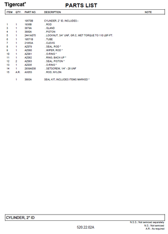 TIGERCAT 1075 PARTS CATALOGUE MANUAL