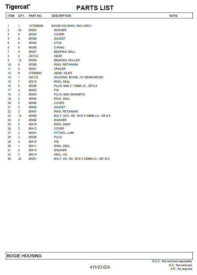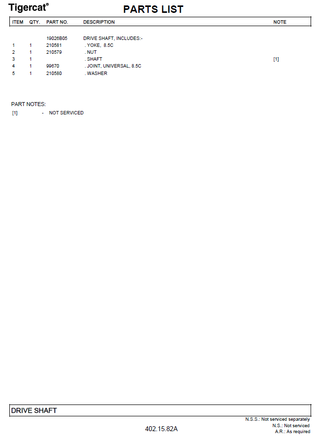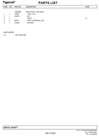 TIGERCAT 1075B PARTS CATALOGUE MANUAL