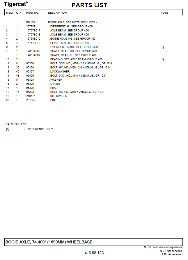 TIGERCAT 1075C PARTS CATALOGUE MANUAL