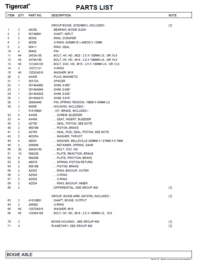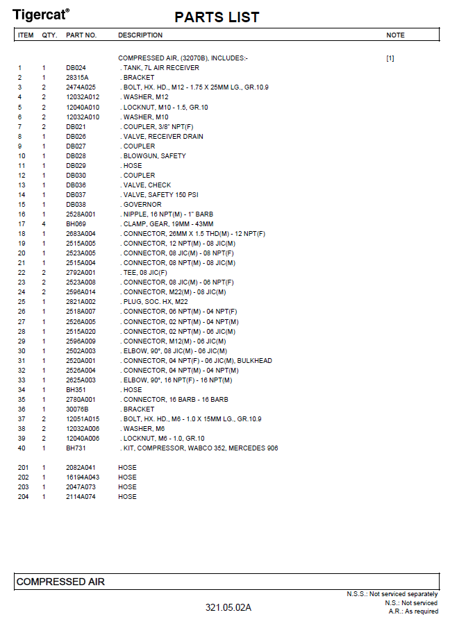 TIGERCAT 1085B PARTS CATALOGUE MANUAL
