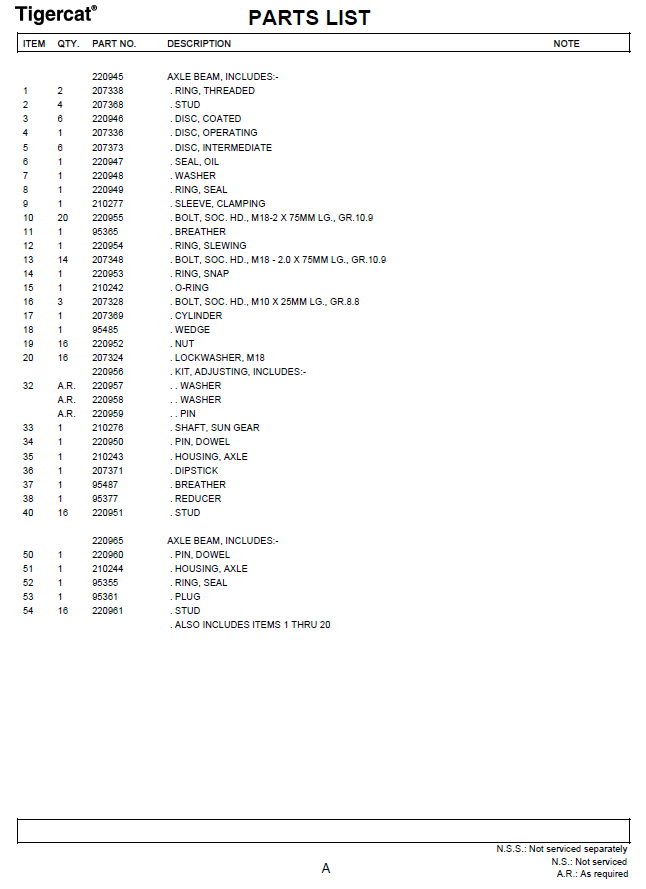 TIGERCAT 1135 PARTS CATALOGUE MANUAL